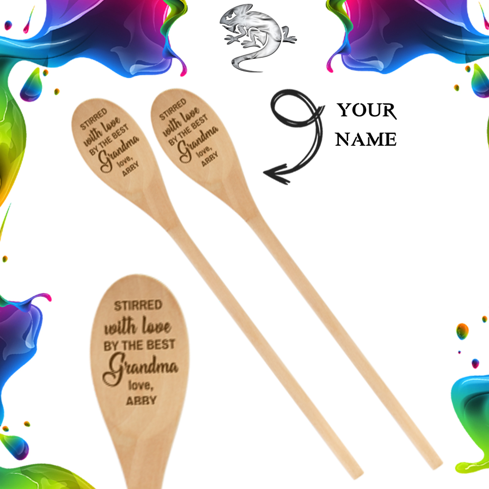 30cm Engraved Wooden Spoon “Stirred with Love by the best Grandma” & your name.