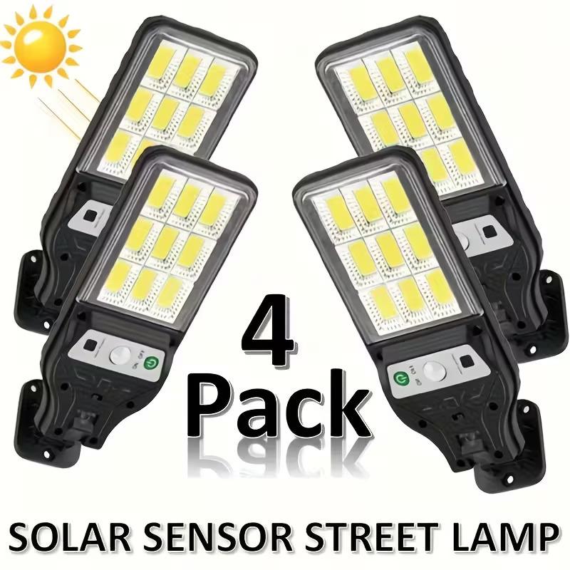 4pcs Smart LED Solar Light, Motion Sensor Solar Wall Lights 3 Modes & Remote Control- Mode 1:Turn on high brightness when people pass by at night, and then turn off in 30s. Mode 2:Turn on medium brightness at night and change to high brightness when people pass by. Mode 3:Auto turn on at night, Auto turn off in daylight.