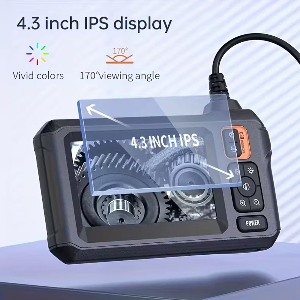 4.3-INCH LCD DISPLAY HD Endoscope camera with a 4.3-inch color LCD screen that allows you to view high-definition images in real time. Easy to operate, you can use it immediately when it is powered on. No need to use your smartphone to connect to the WIFI and no need to download any driver software. So you do not need to worry about dirtying your expensive phone at work too. Note: The endoscope cannot take pictures and videos